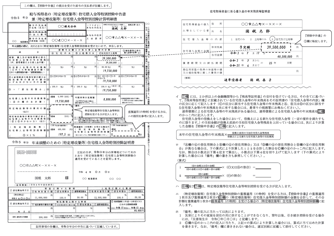 国税庁:給与所得者の住宅借入金等特別控除申告書の記載例より