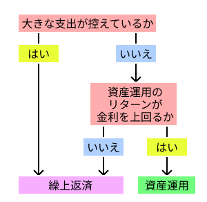 大きな支出がない場合でも、適用金利が低く、資産運用のリターンが金利を上回る可能性が高いと考えるのであれば、資産運用に回すことが合理的です。ただし、資産運用にはリスクと手間があることから、それらを避けたい場合には、繰上返済によって確実に総返済額を減らす戦略もよいでしょう。
