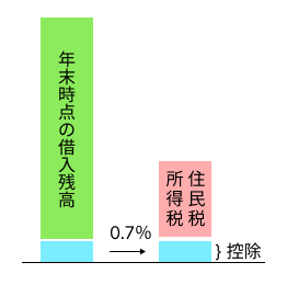 中古住宅では、建物・土地の価格に対する住宅ローン残高の0.7%が控除額の上限となり、新築住宅と同様に所得税・住民税から控除されます。