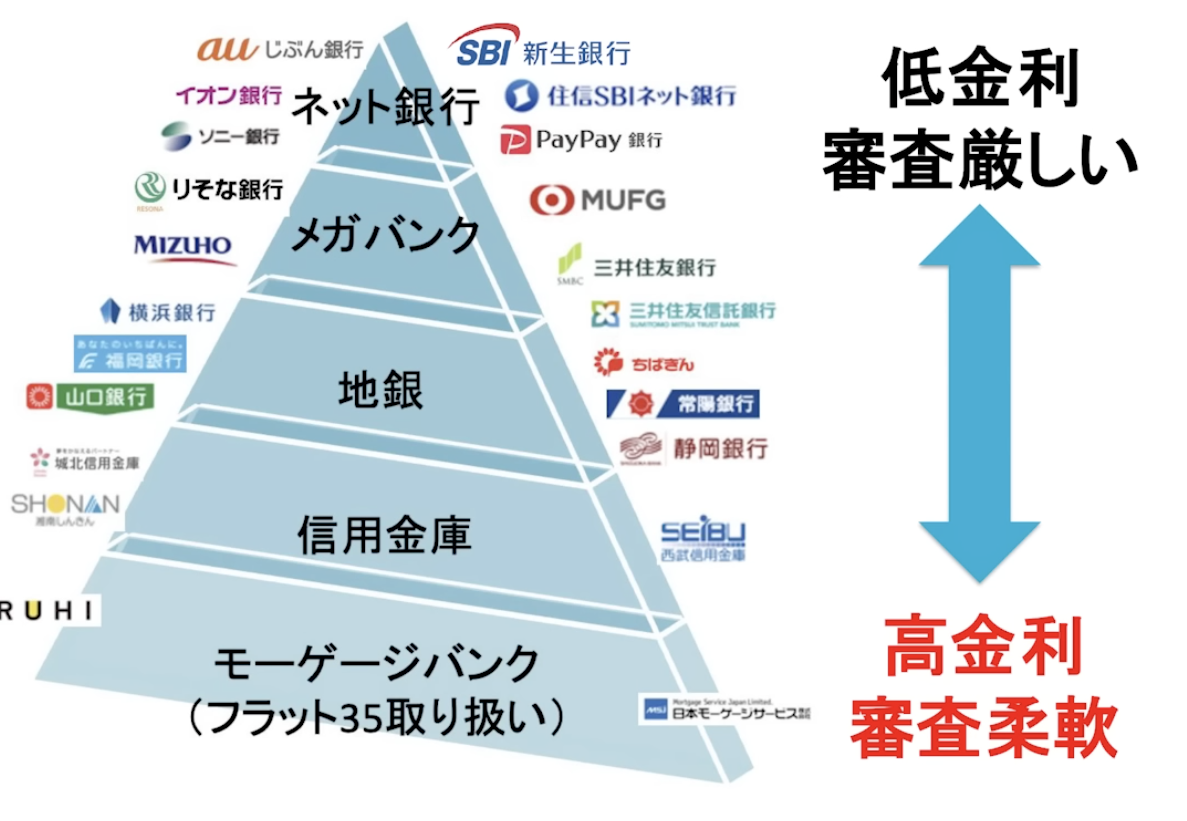 ・ネット銀行: 金利は低いが審査は厳しめ。