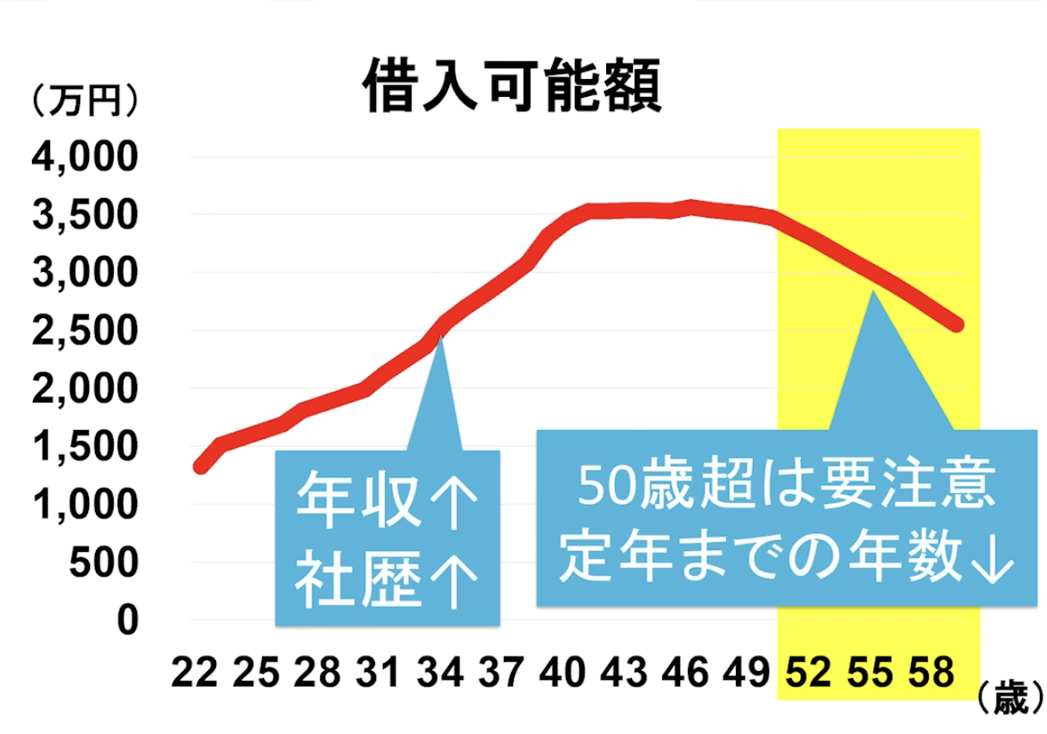 「もっと借りられる」と思うかもしれませんが、年齢による借入可能額の推移にも注意が必要です。