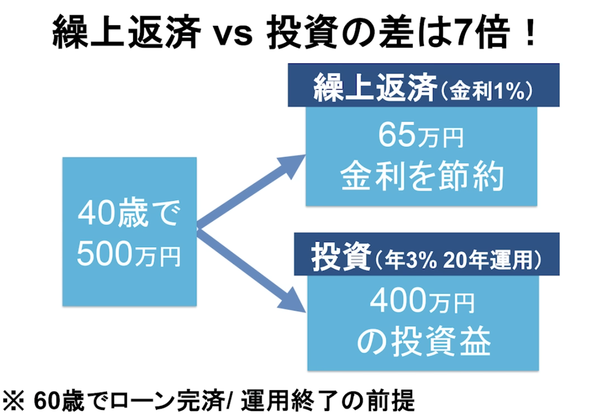 繰り上げ返済と投資、その差は約7倍にもなる可能性があります。