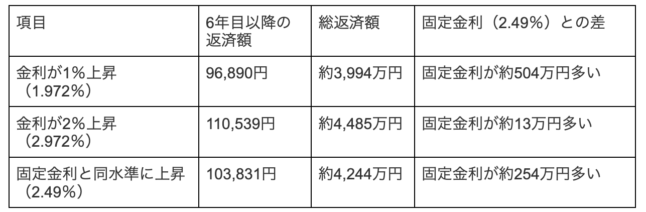 計算上は、金利が短期間で大幅に上昇すると、毎月返済額以上に利息が増えてしまうことで「未払利息」が生じる可能性もあります。