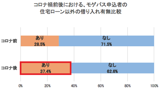 コロナ前に住宅ローン以外の借り入れがある層の割合は28.5%だったのに対し、コロナ後には37.4%と8.9%増加しました。