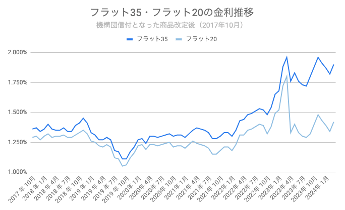 長期金利が上がり、機構MBS利率が上がると、フラット35金利が上がる