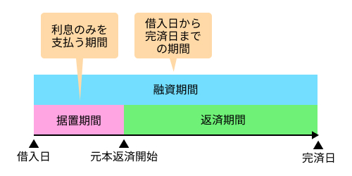 なお、融資期間は、先に説明した返済期間と、次に説明する据置期間を合計したものとなります。