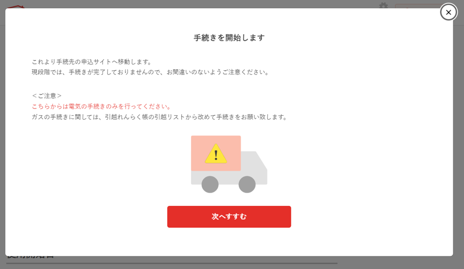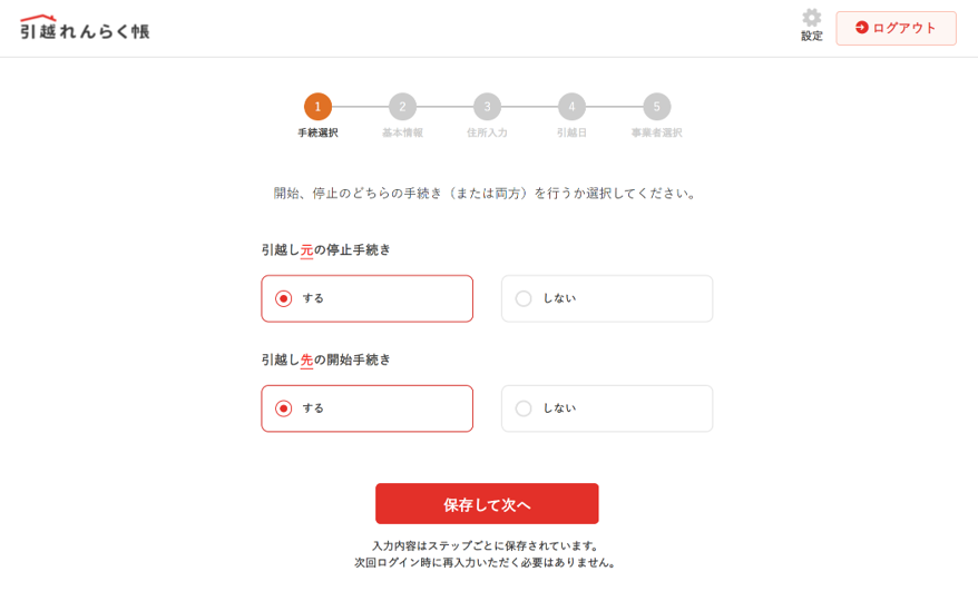 ・「引越し元(現在の住まい)の停止手続き」と「引越し先の開始手続き」の選択