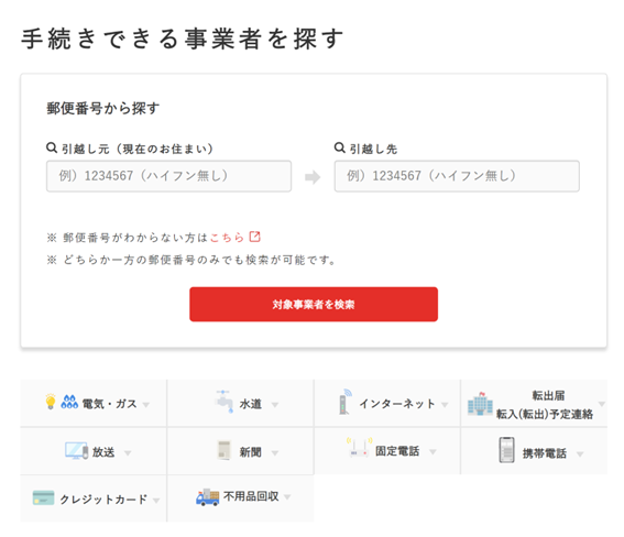 ※手続き先によっては、専用ページでの申し込みが必要なケースがあります。