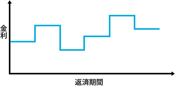 文字通り満期まで金利が固定化されている金利タイプです。毎月返済額が満期まで変わらないので安全です。一方、変動より金利水準が高いので、金利負担が大きくなります。
