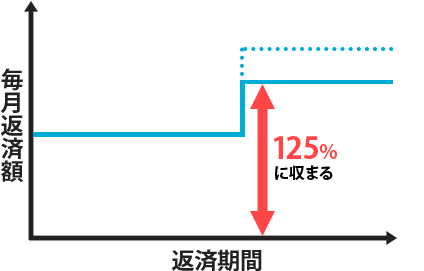 125%ルールとは、5年ルールを適用している金融機関で返済額が増える際、今までの返済額の1.25倍を上限とするルールです。例えば従来の月々の返済が10万円の場合、返済がどれだけ増えても12.5万円が上限となります。