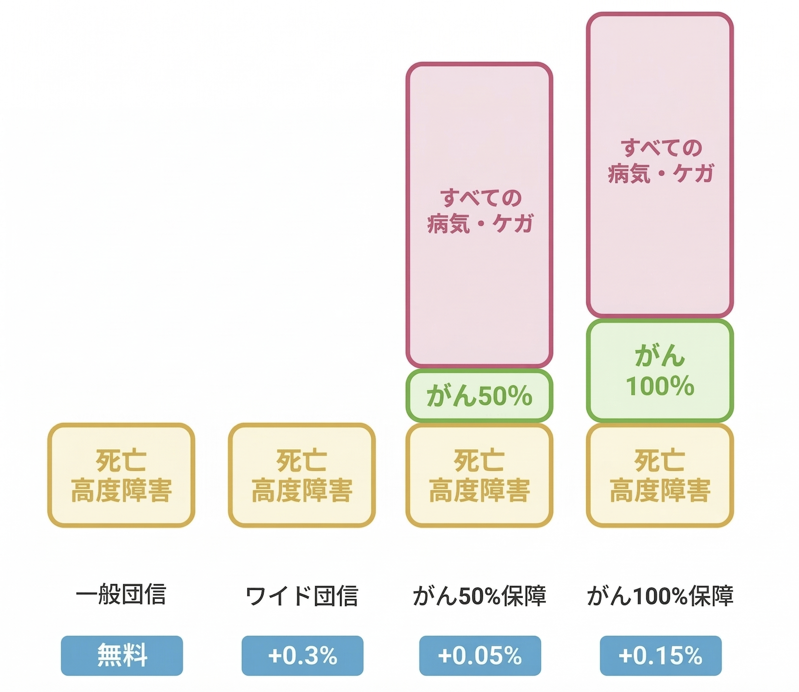 一般団信 ワイド団信 がん50%保障 がん100%保障 |