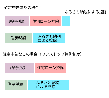ただし、ふるさと納税による所得控除が先に計算されることによって所得税額が減り、一部のケースでは住宅ローン控除額が減ってしまう場合があります。住宅ローン控除で所得税から控除しきれない分は住民税から控除されますが、併用する場合は住民税からの控除に回る分がより多くなるのです。