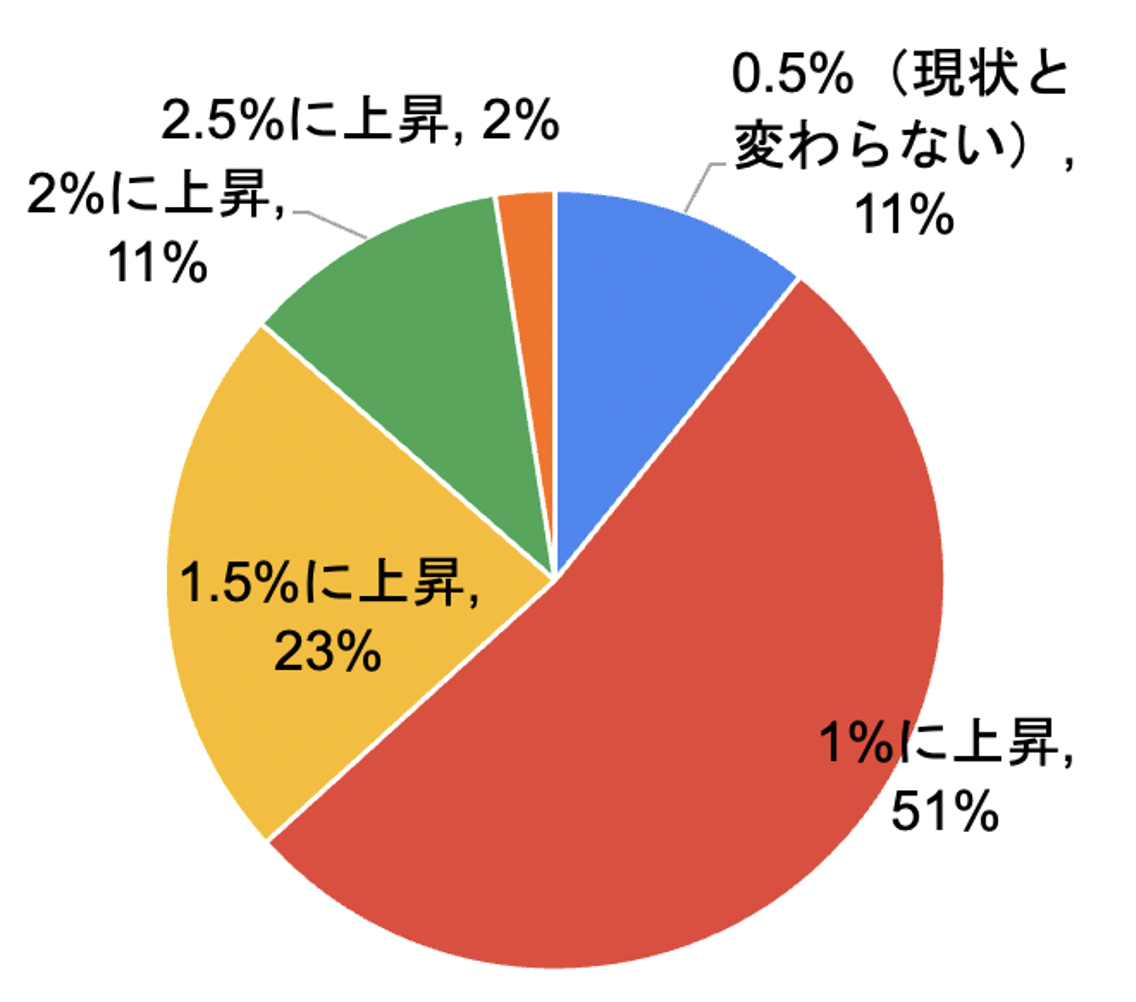 1%に上昇すると考えている人が半数との結果になりました。「現状維持」〜「1.5%に上昇」までを合算すると、85%のユーザーとなりました。