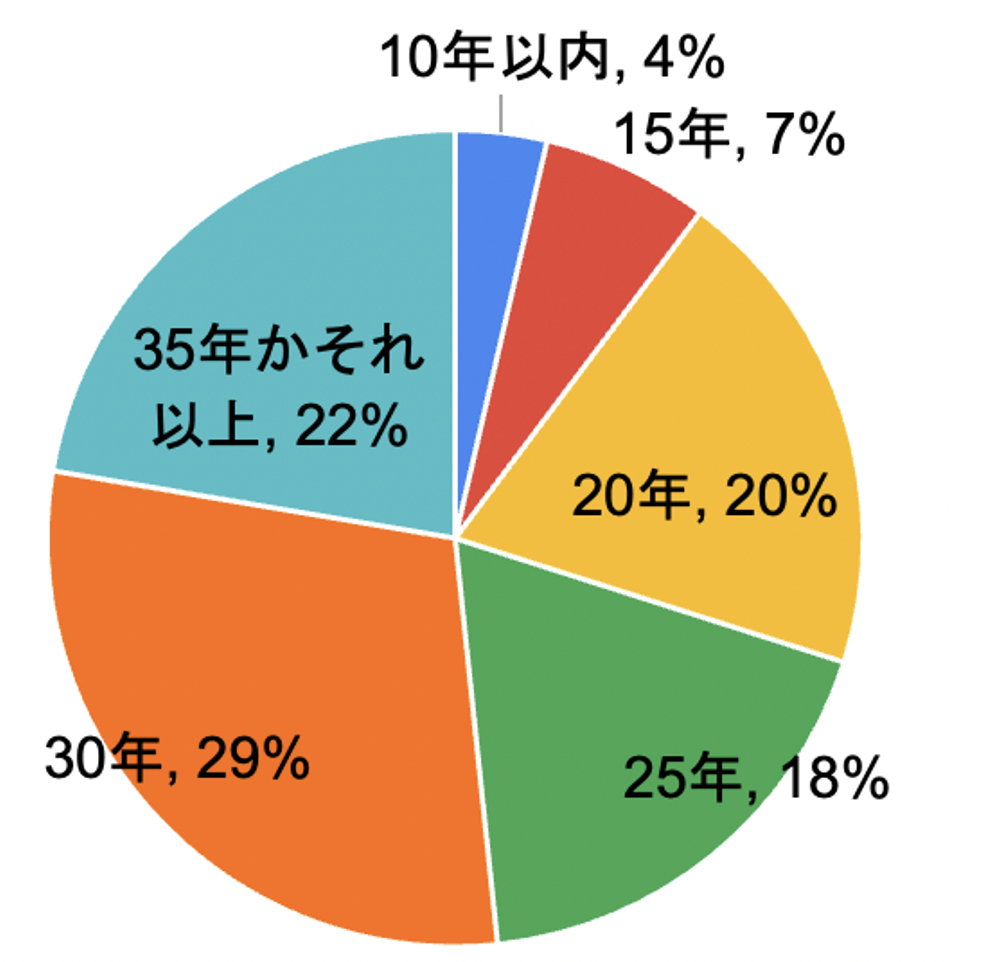 半数のユーザーが30年以上の時間をかけて返済したいと回答しました。物件価格が高騰しているため、毎月の家計に無理ない範囲で返済を続けたいと考えている人が多いものと思われます。