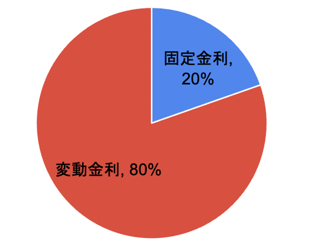 80%のユーザーが変動金利と回答しています。この2月以降、固定金利が上昇しているため変動と固定の金利差が拡大しています。高金利(1.45% ※)の固定金利よりも、低金利(0.44% ※)の変動金利のほうが人気は根強いようです。