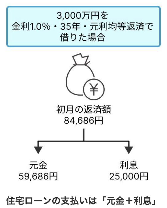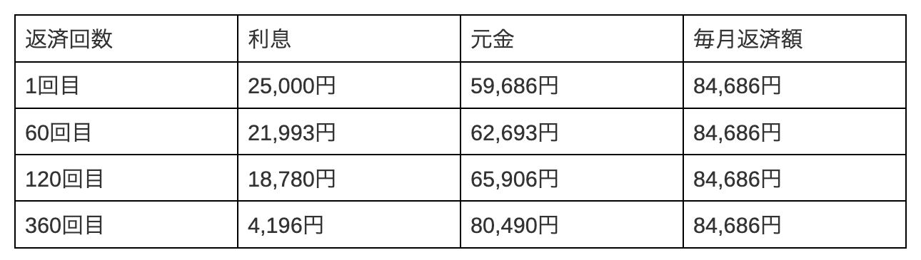 このうち初月の内訳は、元金が59,686円、利息が25,000円です。