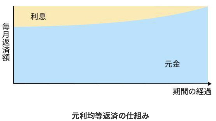 返済の初期ほど返済額に占める利息の割合は大きく、次第に元金の割合が増えていきます。