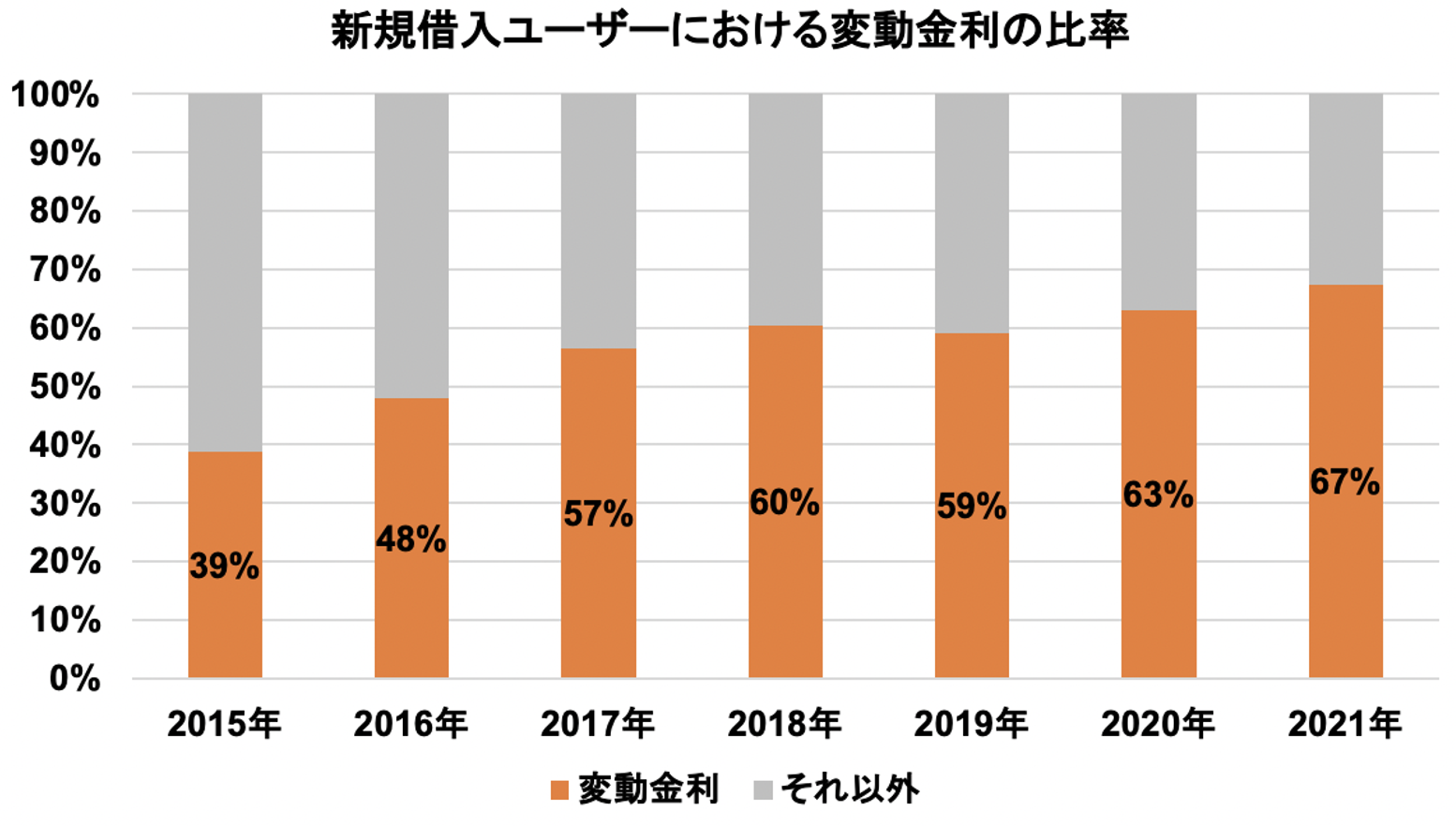 日米の金利差拡大による歴史的な円安を受け、金融緩和政策の修正を求める声が一部で上がっています。しかしながら、2016年のマイナス金利導入後に変動金利ユーザーは増大しており、マイナス金利前の2015年は約40%(※4)だったものが今や約70%(※4)のユーザーが選択する主力のローン商品です。賃金上昇が伴わない金利上昇は消費活動を冷やしかねず、金融緩和政策の軌道修正には慎重な議論が求められると言えます。