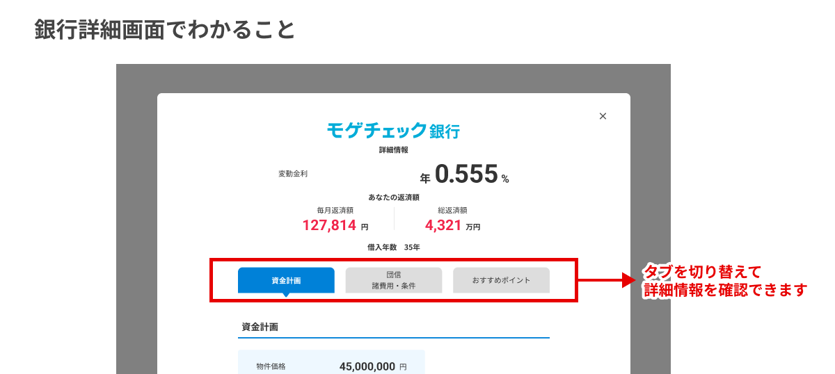 資金計画書や通る確率も!詳細画面で詳しくわかること