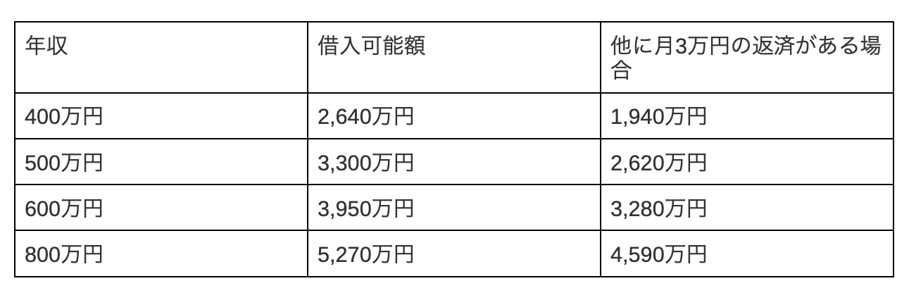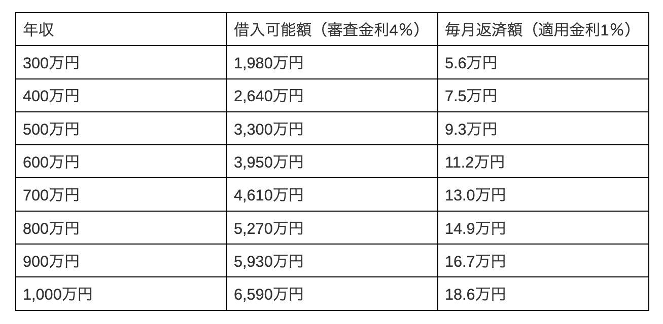 【年収別早見表】審査金利4.0%での借入可能額シミュレーション