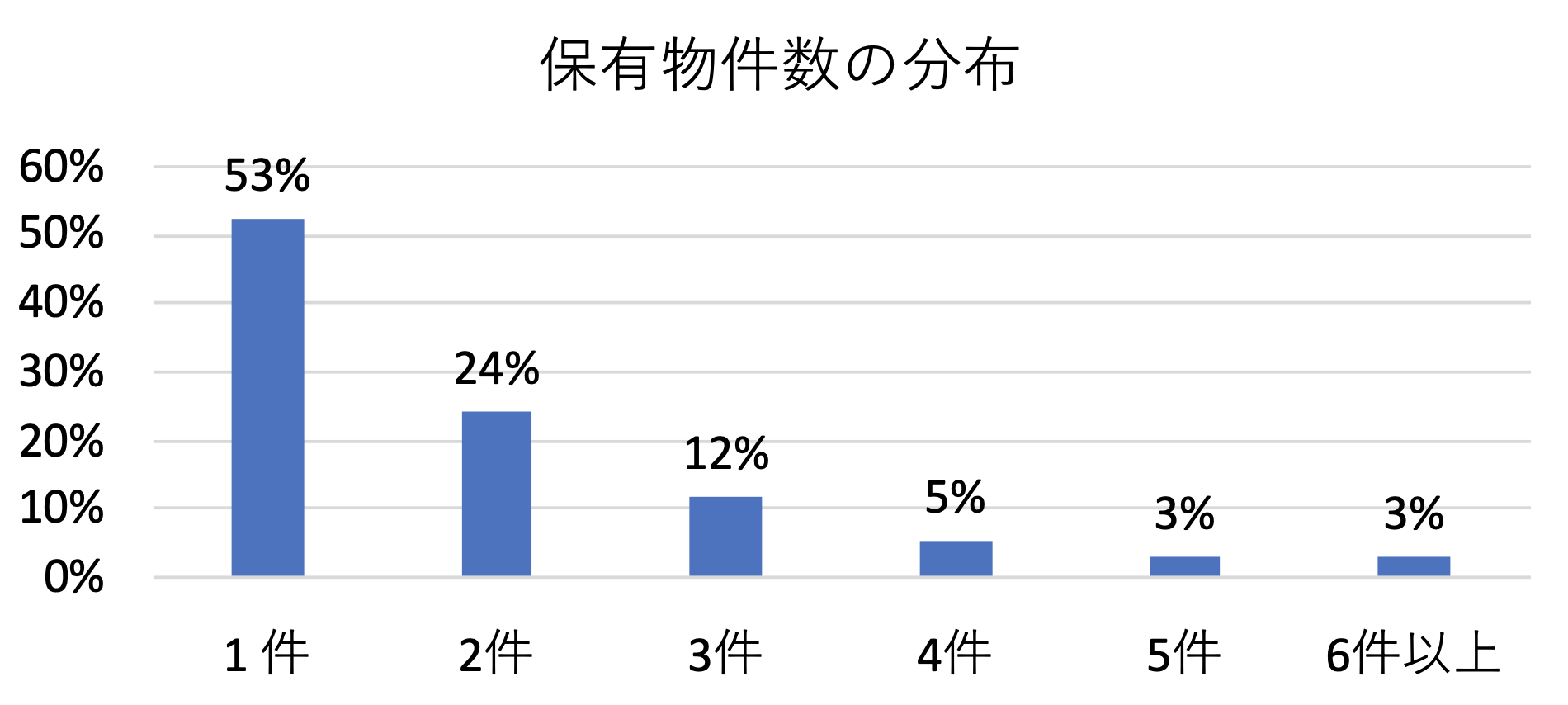 すでに保有物件があるユーザーを分析したところ、半数が1件のみ保有、残り半数が2件以上の複数物件を保有しています。平均2.2件で、最高は21件でした。
