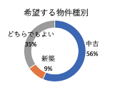 今後購入を希望する物件種別については半数以上が中古と回答しました。不動産価格高騰を受け、買い求めやすい中古物件に人気が集まっていることがわかります。