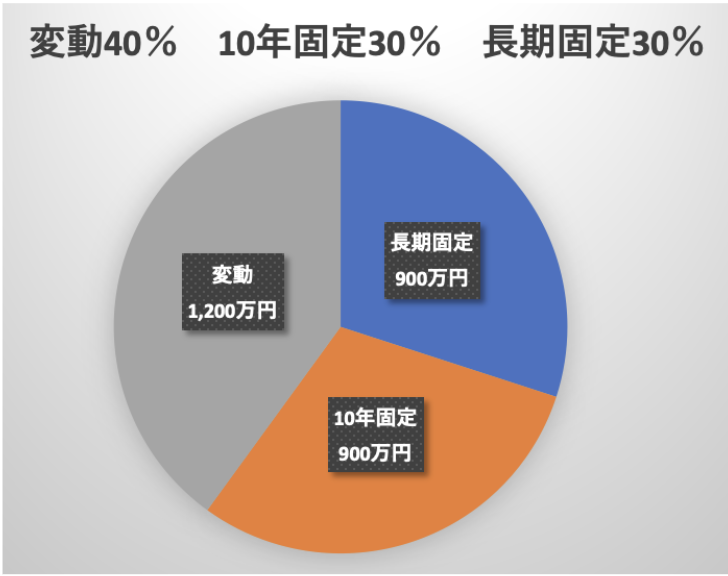 住宅ローン全体を変動や固定にするより、一部を変動、残りを固定にすることで、全体のリスク分散を計ろうというものです。従ってローン利用者はあくまでも一人で、複数の異なる金利タイプを選びます。