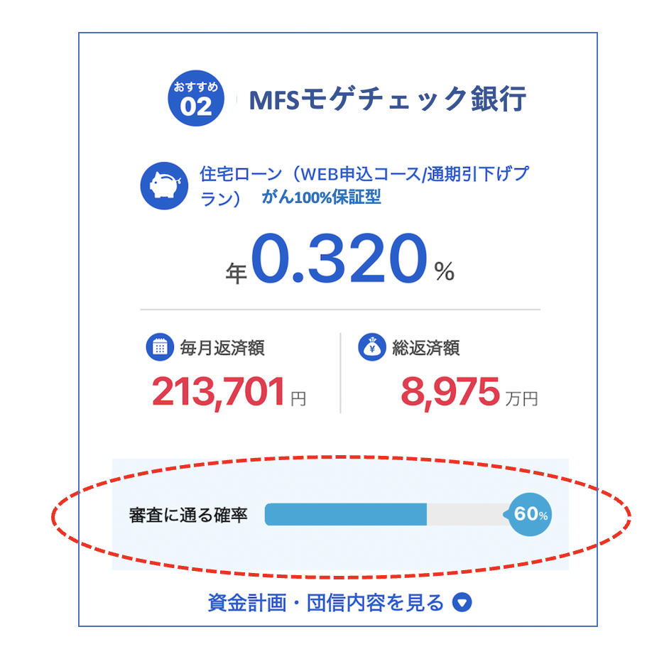 住宅ローンは多くの消費者にとって人生最大の買い物である住宅取得に必要である一方、金融機関によって金利等の条件や審査基準が大きく異なり、自身にとって最適なローンを選ぶことが困難であるという課題がありました。こうした課題の解決に向けて、MFSが過去蓄積してきた住宅ローン審査データや独自分析した各金融機関の審査ロジックを活用し、開発したのがAI(機械学習)による融資承認確率モデルです。融資承認確率モデルでは、住宅ローン利用者が「どの銀行に、どのくらいの確率で審査に通るか」を判定するほか、融資承認確率を上げるためのアドバイスを提供します。現在、融資承認確率モデルはオンライン住宅ローン提案サービス「住宅ローン診断」に搭載しており、住宅ローン利用者は無料で利用可能です。