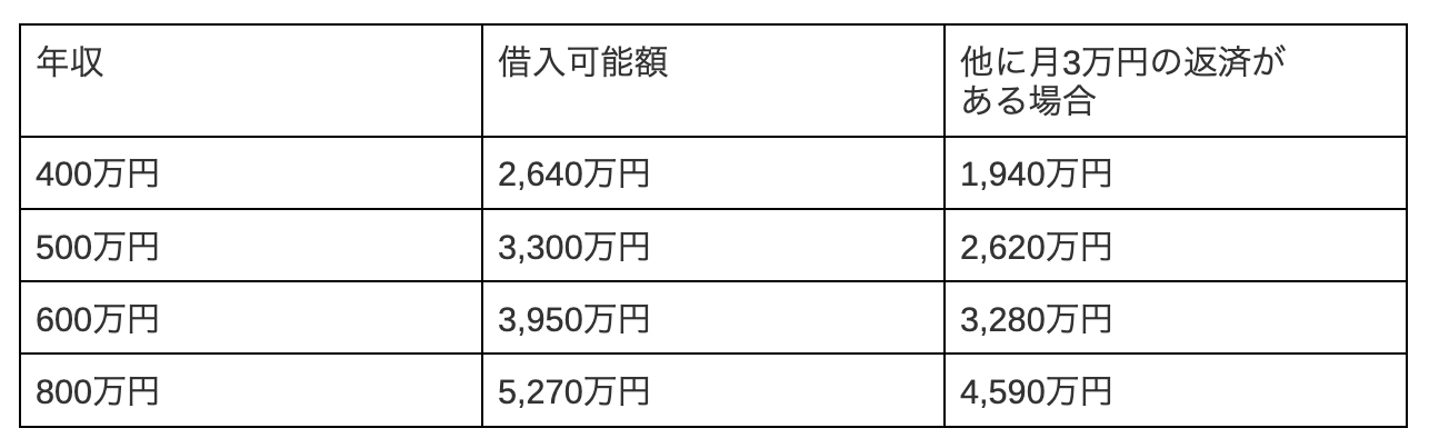 【年収別早見表】審査金利4.0%での借入可能額シミュレーション